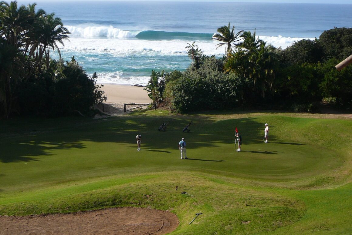 Der Wild Coast Sun Country Club in Port Edward, Südafrika, ist ein 18-Loch-Golfplatz, entworfen von Robert Trent Jones Jr., der sich über 6.000 Meter erstreckt und ein Par von 74 hat. Der Platz bietet spektakuläre Ausblicke auf den Indischen Ozean und umfasst das herausfordernde 13. Loch, das über eine Schlucht und einen Wasserfall führt. Golfwagen sind obligatorisch, und es gibt eine Golfakademie mit professionellem Coaching.