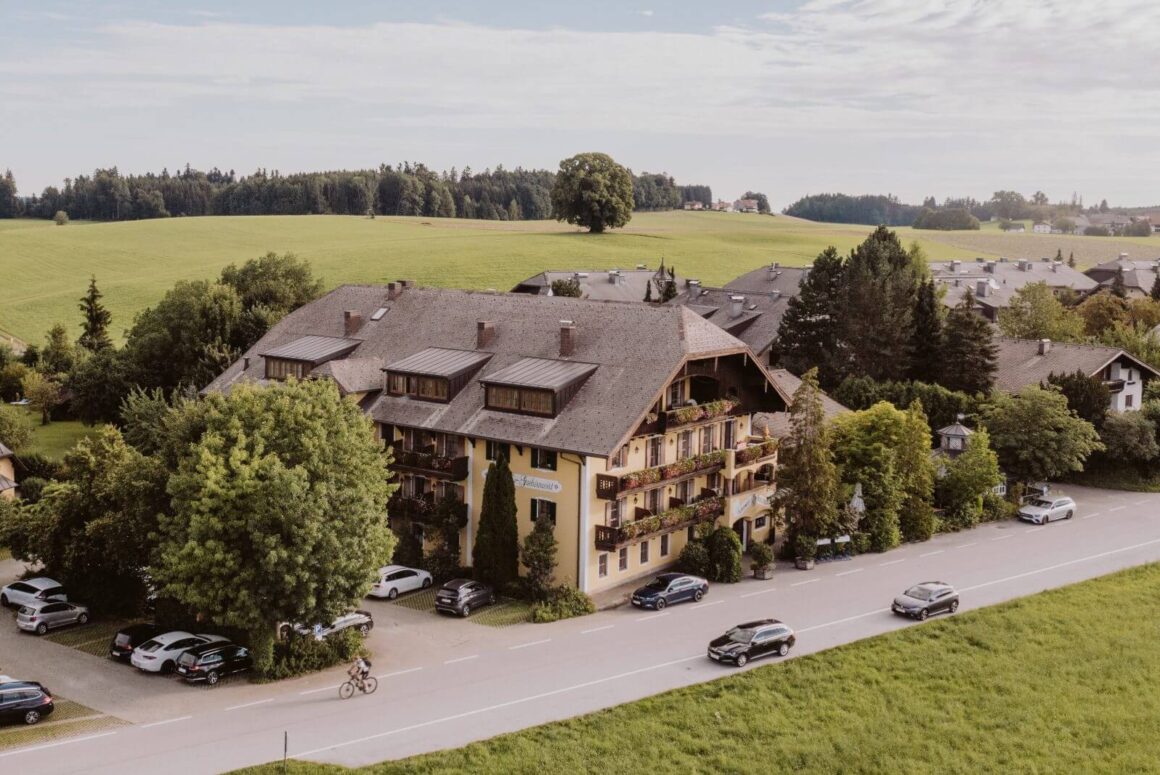Das Landhotel Gschirnwirt in Eugendorf, Österreich, ist ein charmantes Gasthaus mit einer reichen Geschichte und einer gemütlichen Atmosphäre, die Besucher aus der ganzen Welt anzieht. Das Gasthaus befindet sich in einer malerischen Umgebung, umgeben von grünen Wiesen und mit Blick auf die majestätischen Alpen in der Ferne.